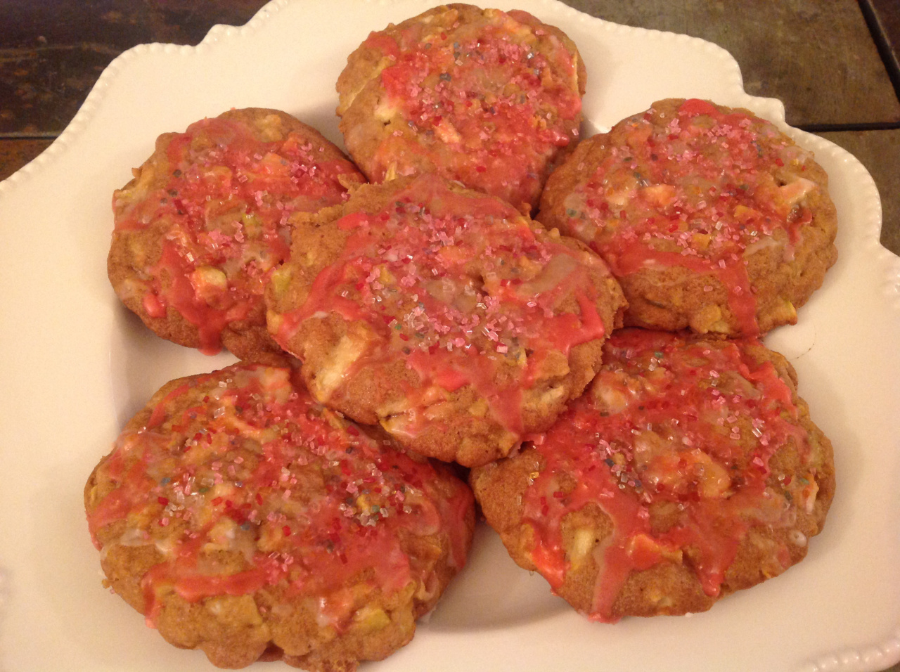 Speaking about things plain and normal vs a little bit twisted. The recipe below is really whatever you want it to be, it’s a plain cookie full of an old time favorite fruit, apples, with a bit of spice and twist on top. Reminiscent of the best Christmas candy and winter itself, it’s a cookie that “colors outside the lines” for sure.