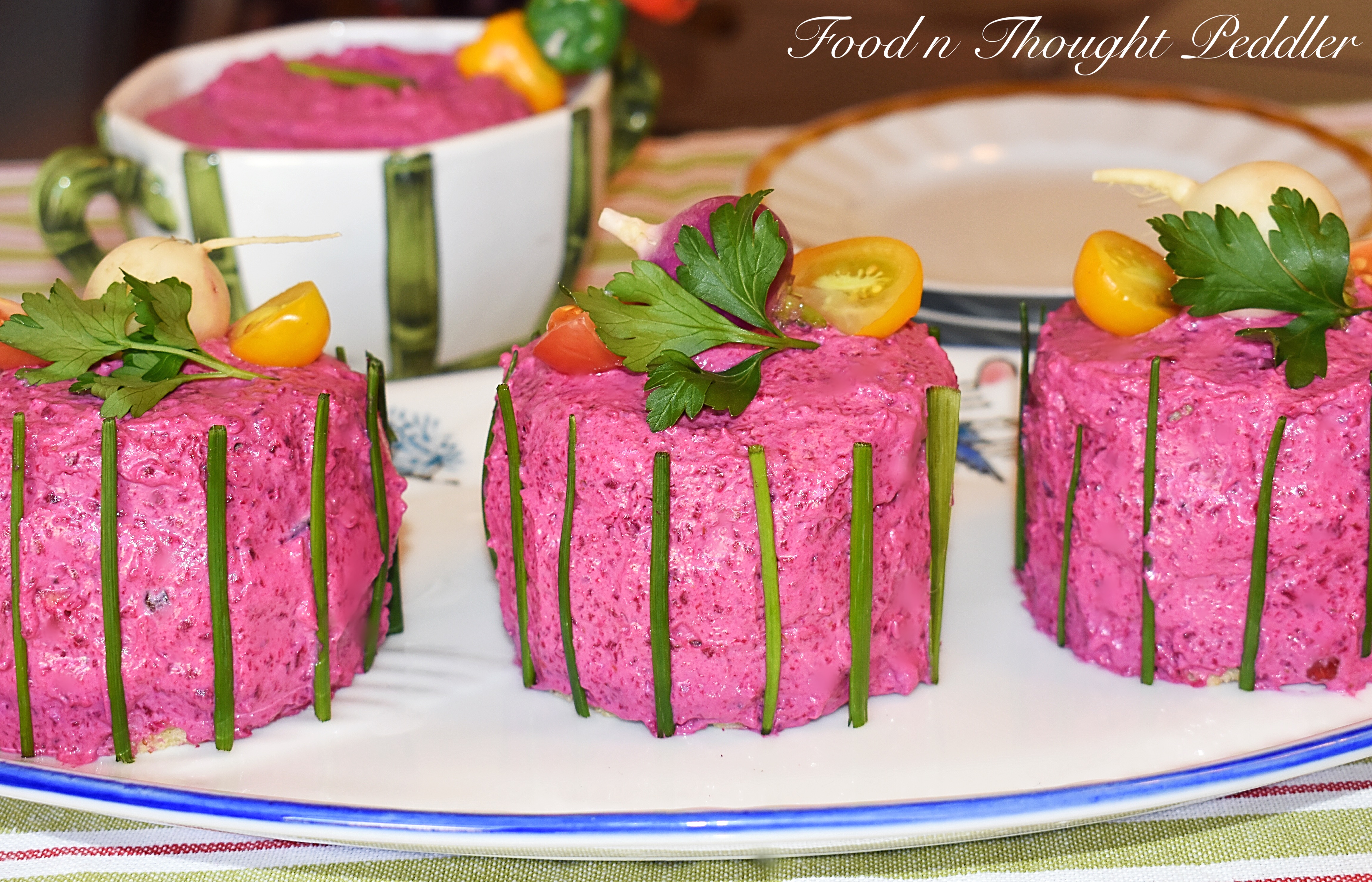 - Decorate with radishes, tomatoes, chives and fresh herbs.